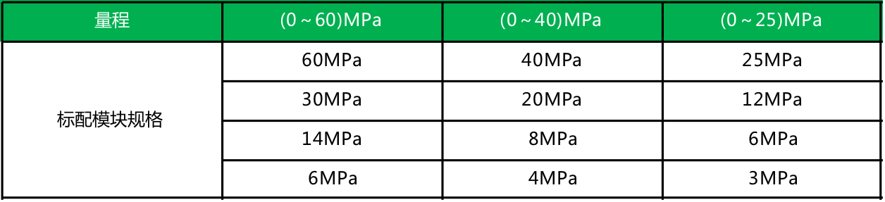 内置压力模块量程表: